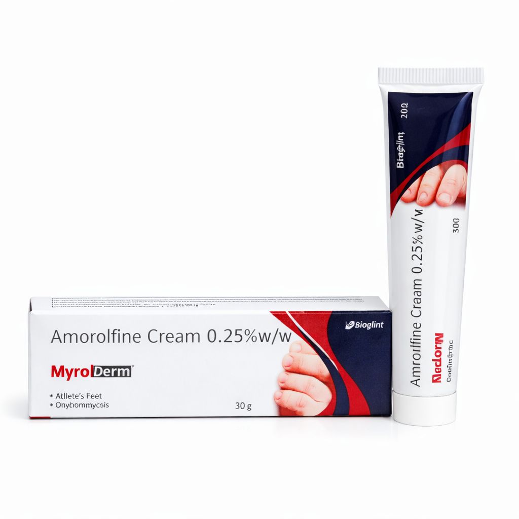 Amorolfine Cream is a medicine used to treat fungal infections on the skin. Fungal infections can cause itching, redness, dryness, and irritation on different parts of the body, such as the feet, hands, nails, or groin area. These infections happen when tiny fungi grow on the skin. Amorolfine Cream helps stop these fungi from growing and spreading. This cream is commonly recommended by doctors because it works directly on the infected skin area. It helps reduce itching, swelling, and discomfort caused by fungal infections. When used regularly, the cream helps the skin heal and return to its healthy condition.